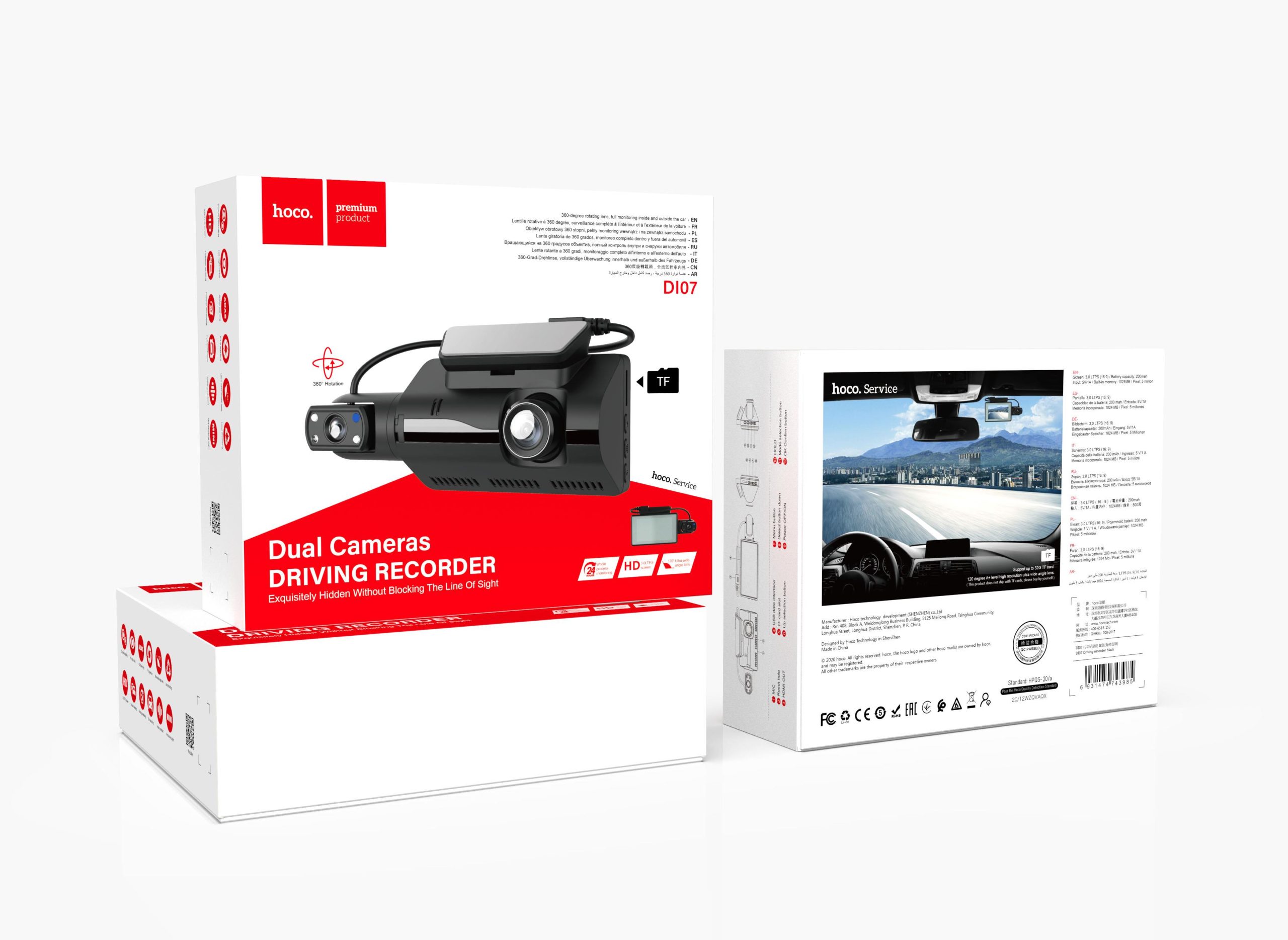 360- Degree Rotating Lens Full Monitoring Inside & Outside The Vehicle Dual Recording HD Night Vision ADAS Warning Ultra-Wide Lens Loop Recording Ultra Wide-Angle Lens Collision Sensing Voice Broadcasting Mini & Convenient 24hr Parking Monitoring