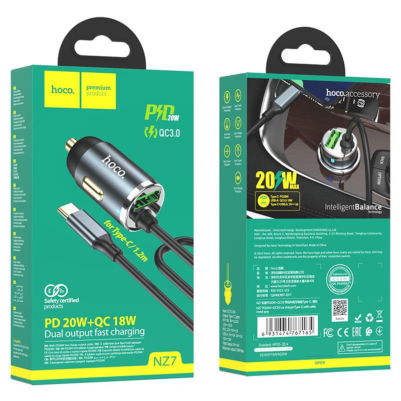 HOCO NZ7 ΦΟΡΤΙΣΤΗΣ ΑΥΤΟΚΙΝΗΤΟΥ PD20W+QC3.0 ΜΕ ΚΑΛΩΔΙΟ TYPE-C, 1 ΘΥΡΑ