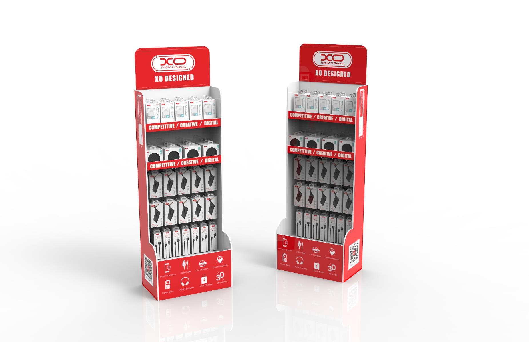 Τα προϊόντα της ΧΟ μπορούν να τοποθετηθούν στο ειδικό ράφι, το οποίο προσφέρεται δώρο μαζί με παραγγελία άνω των 350€ καθαρής αξίας. Το σταντ έχει διαστάσεις: L600*D360*H1800mm.