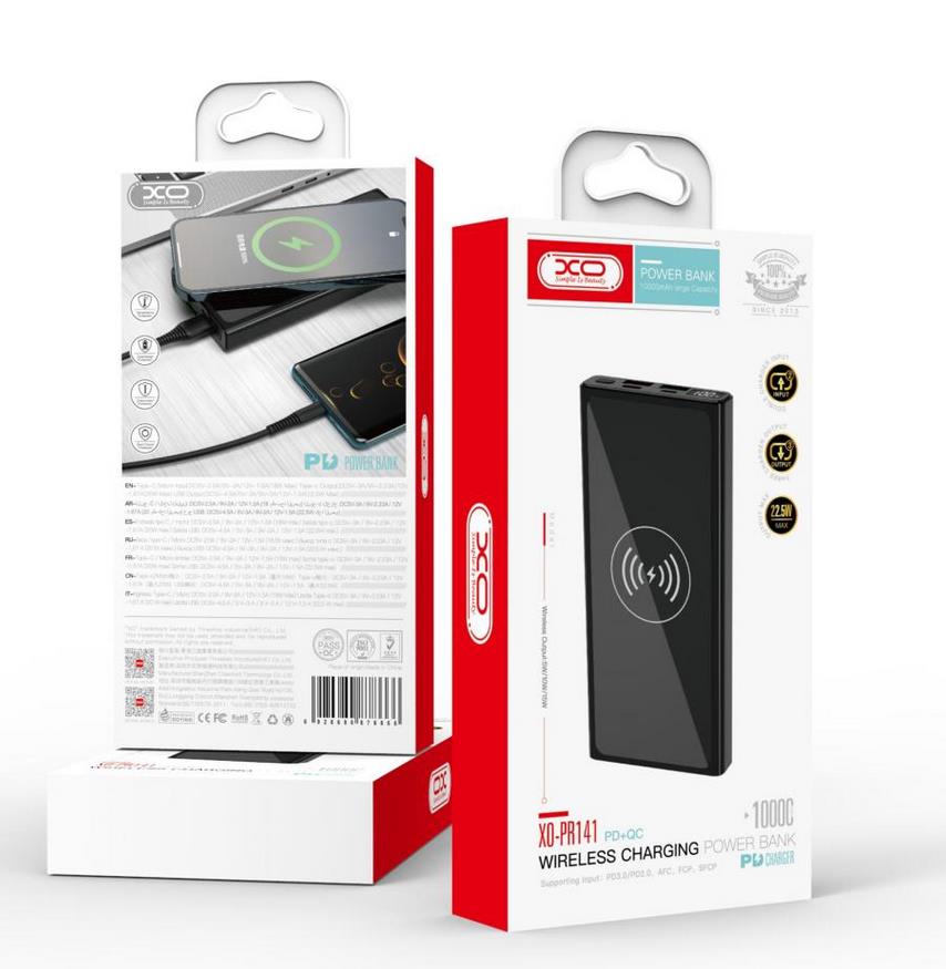 XO PR141 POWERBANK 10000mAh, QC22.5 + PD20W +WIR15W ΜΕ ΟΘΟΝΗ, ΜΑΥΡΟ